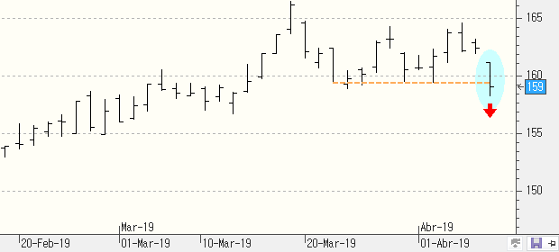Cuidado con la perforación del soporte del coto plazo en Aena. La compañía ha perdido este lunes el nivel de los 159,50 y no descartamos acabar viendo una continuación de las caídas hasta las inmediaciones de los 150 euros, precios en donde se encuentra la media de 200 sesiones.