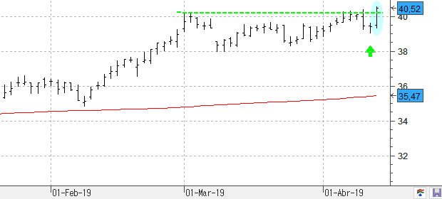 ACS termina el jueves con unas subidas del 2,69% lo que le permite cerrar por encima de la resistencia clave de los 40,21 euros. Atentos que el valor del Ibex 35 se mete en subida libre con todo dispuesto para que acabemos viendo una continuación de las subidas hasta el nivel de los 43 euros.