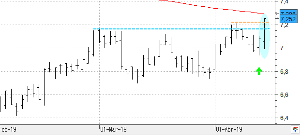 Bankinter confirma la superación de la resistencia de los 7,16 euros y se enfrenta a la media de 200 sesiones. Muy pendientes de un cierre por encima de los 7,37 euros ya que no descartamos acabar viendo una continuación de las subidas hasta el nivel de los 7,80 euros.