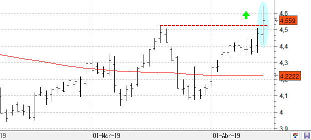 Atentos que el Santander ha conseguido superar la resistencia de los 4,52 euros, máximos anuales. El bando confirma un cambio de tendencia y parece muy probable que acabemos viendo un ataque al nivel de los 4,74 euros, precios que creemos que podría alcanzar en las próximas sesiones.