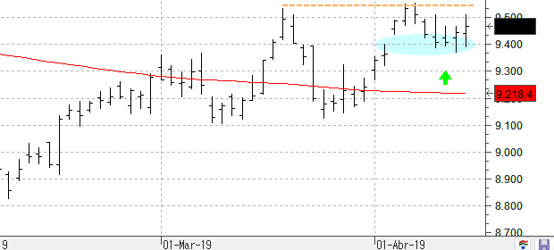 Subidas del 0,24% en el Ibex 35 que termina la semana perforando los máximos de miércoles y jueves. Se confirma el giro tras cubrir el hueco alcista que se dejara el pasado día 3 de este mes. Para las próximas sesiones parece muy probable que veamos un ataque a la resistencia de los 9.553 puntos, máximos anuales. Un cierre por encima de este nivel de precios nos confirmaría el comienzo de un nuevo impulso alcista que podría acabar llevando al selectivo español hasta el nivel de los 9.900 puntos.
