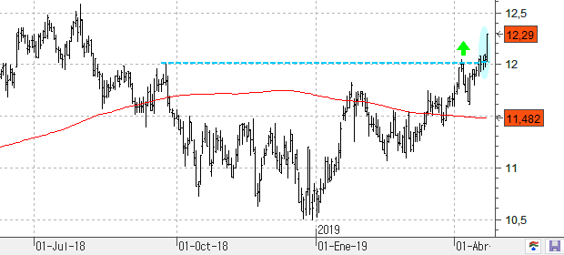 Atentos que San José consigue superar la resistencia de los 6,90 euros lo que nos hace pensar en un ataque inminente a la resistencia clave de los 7,14 euros. Si consiguiera superar este nivel de precios podríamos acabar viendo una continuación de las ganancias hasta el nivel de los 7,60 euros.