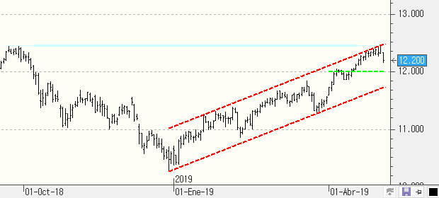 Fuertes descensos para comenzar la semana en el Dax que se frena de golpe tras atacar la resistencia clave del corto plazo que presenta en los 12.447 puntos. El selectivo se toma un respiro tras las subidas ininterrumpidas de finales del mes de marzo. En poco más de un mes el valor se ha revalorizado más de un 10% y desde comienzos de año se ha llevado a revalorizar cerca de un 20%. Es normal que veamos un alto en el camino que se podría extender hasta el primer nivel de soporte situado en las inmediaciones de los 12.000 puntos. Lo más normal es que por estos precios podamos volver a ver la vuelta de las compras. Si todo sigue su curso, tras un alto en el camino, lo más normal es que podamos acabar viendo un ataque al nivel de los 13.200 puntos.