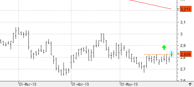 Atentos que Caixabank consigue perforar la resistencia del corto plazo que presenta en los 2,82 euros. El banco parece que tiene ganas de continuar con las subidas hasta el nivel de los 3 euros, niveles en donde calibraremos la fortaleza de las compras para los próximos meses.