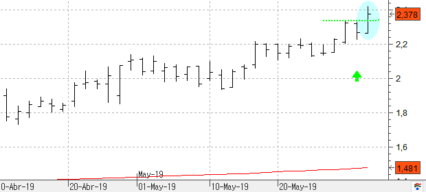 Fuertes subidas del 4,76% en Pharma Mar que consigue cerrar en máximos anuales tras conseguir superar los máximos de las últimas dos sesiones. Para las próximas sesiones sus perspectivas técnicas son muy buenas y todo parece indicarnos que podríamos acabar viendo una continuación de las subidas hasta el nivel de los 2,57 euros, máximos del hueco bajista que se dejara a comienzos de 2018.