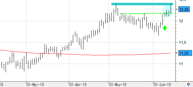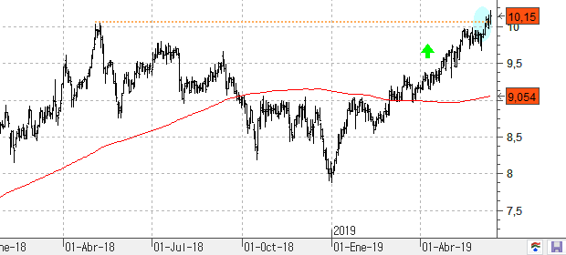 Muy buena señal en Inmobiliaria Colonial que consigue superar los máximos de 2018 que dibujara en los 10,07 euros. El valor se mueve en los máximos de los últimos años con todo dispuesto para que acabemos viendo una continuación de las subidas hasta el nivel de los 11 euros.