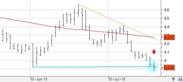 Atresmedia pierde el soporte de los 3,92 euros y se acerca al soporte de los 3,71 euros. Estos precios corresponden a los mínimos anuales por lo que si al final los pierde acabaríamos viendo una continuación de las caídas hasta el nivel de los 3 euros lo que supone un desplome del 23% desde los precios actuales.