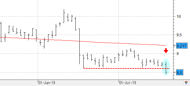 Indra pulveriza el soporte clave de los 8,61 euros lo que confirma la formación de un pull back a la media de 200 sesiones. Ojo que para las próximas sesiones podríamos acabar viendo una extensión de los descensos hasta el nivel de los 7,89 euros, mínimos de comienzos de año.