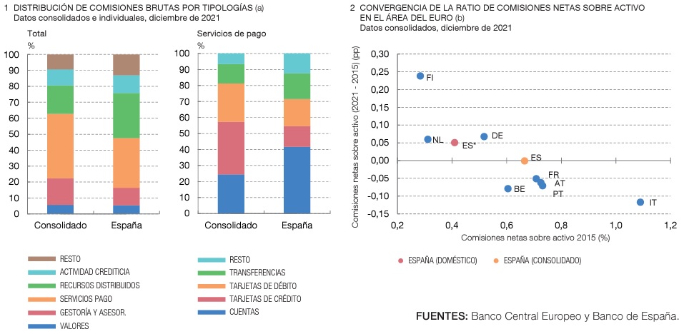 «Los ingresos por comisiones se han incrementado en los últimos años en un proceso de convergencia hacia valores medios europeos, con los servicios de pago como fuente principal de ingresos por este concepto», explica el organismo español.