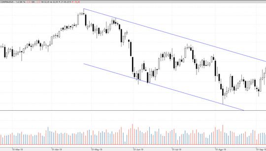 A la vista del gráfico diario del futuro del barril de crudo tipo Brent podemos observar cómo tenemos el precio…